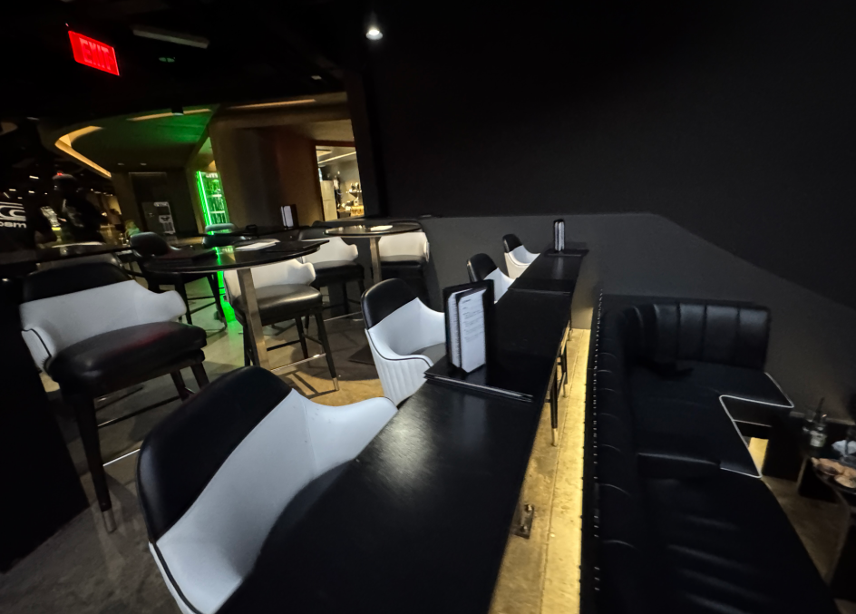 2階にはバーカウンターもあり、雰囲気はまさに“スポーツバー×映画館”といった感じです。